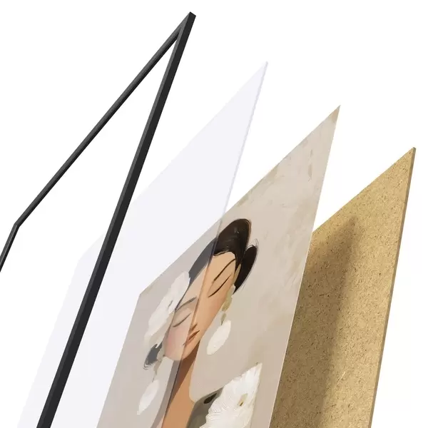 Plakatą sudaro rėmas, pleksiklas, atspausdintas vaizdas ir medžio drožlių plokštės pagrindas. Plakatą galima iš karto pakabinti ant sienos dėl kitoje pusėje esančių laikiklių.