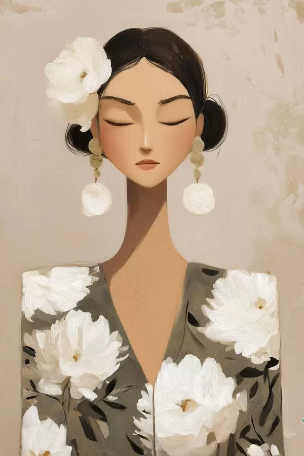 Plakatas Mergina su gėlėmis plaukuose f48233
