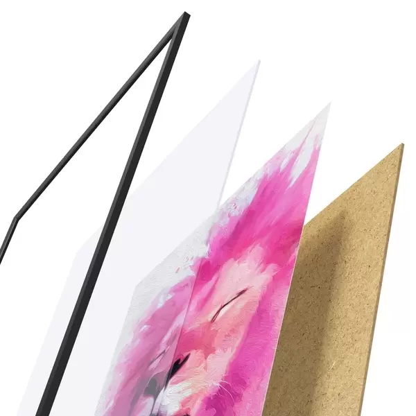 Plakatą sudaro rėmas, pleksiklas, atspausdintas vaizdas ir medžio drožlių plokštės pagrindas. Plakatą galima iš karto pakabinti ant sienos dėl kitoje pusėje esančių laikiklių.