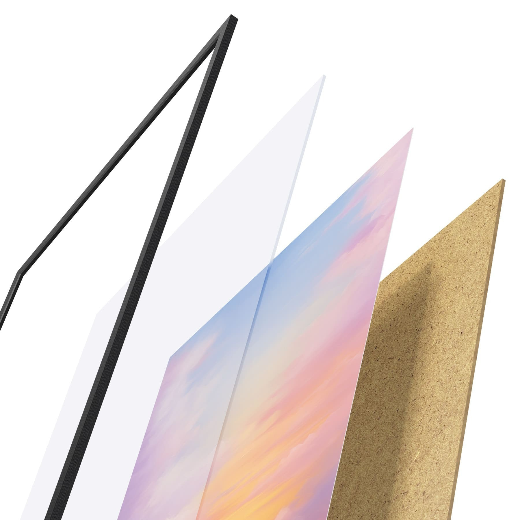 Plakatą sudaro rėmas, pleksiklas, atspausdintas vaizdas ir medžio drožlių plokštės pagrindas. Plakatą galima iš karto pakabinti ant sienos dėl kitoje pusėje esančių laikiklių.