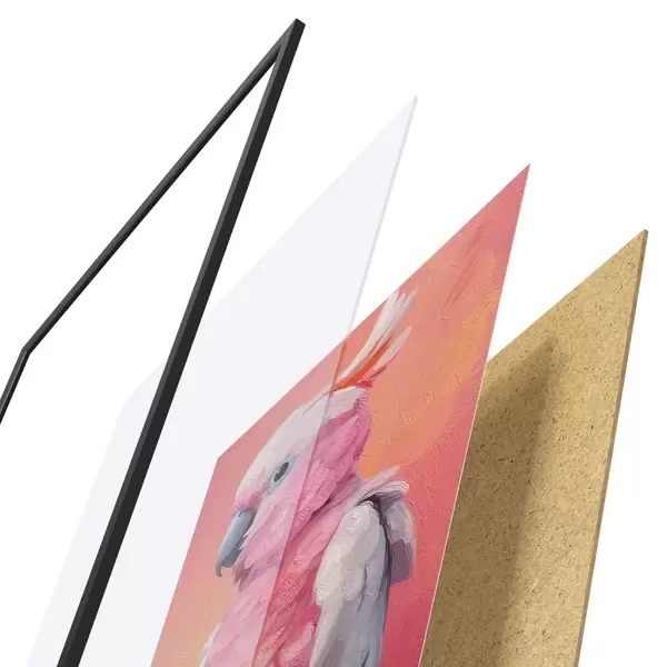 Plakatą sudaro rėmas, pleksiklas, atspausdintas vaizdas ir medžio drožlių plokštės pagrindas. Plakatą galima iš karto pakabinti ant sienos dėl kitoje pusėje esančių laikiklių.