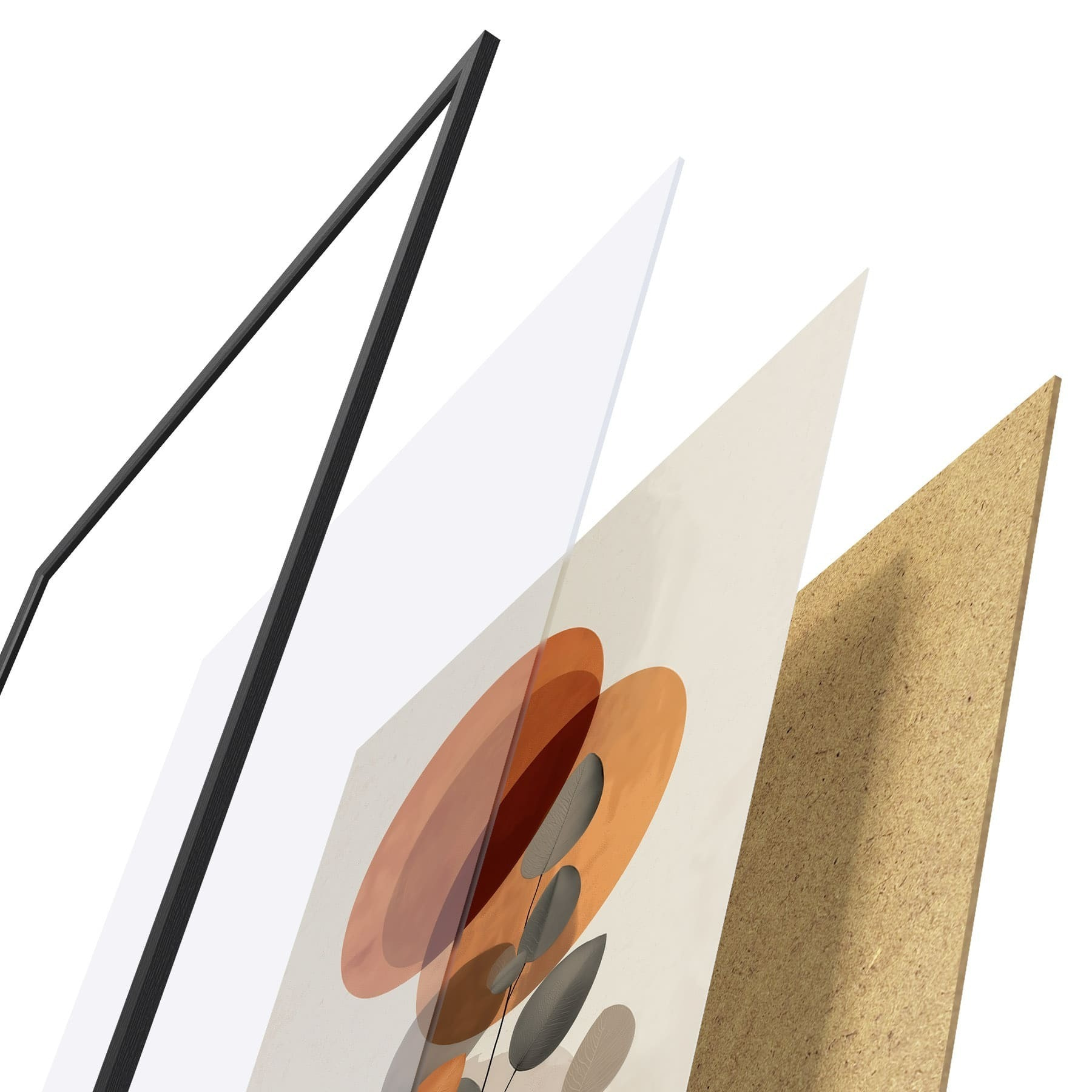 Plakatą sudaro rėmas, pleksiklas, atspausdintas vaizdas ir medžio drožlių plokštės pagrindas. Plakatą galima iš karto pakabinti ant sienos dėl kitoje pusėje esančių laikiklių.