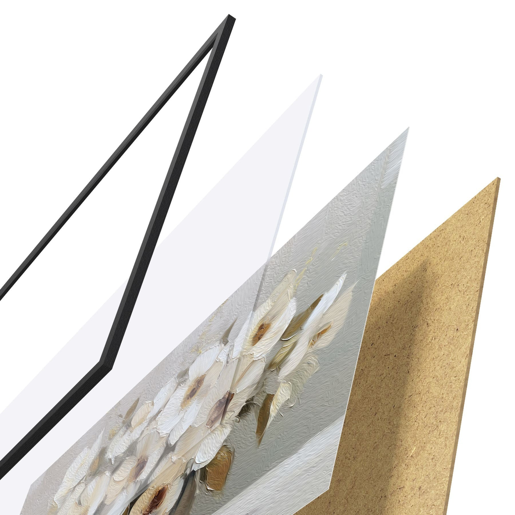 Plakatą sudaro rėmas, pleksiklas, atspausdintas vaizdas ir medžio drožlių plokštės pagrindas. Plakatą galima iš karto pakabinti ant sienos dėl kitoje pusėje esančių laikiklių.