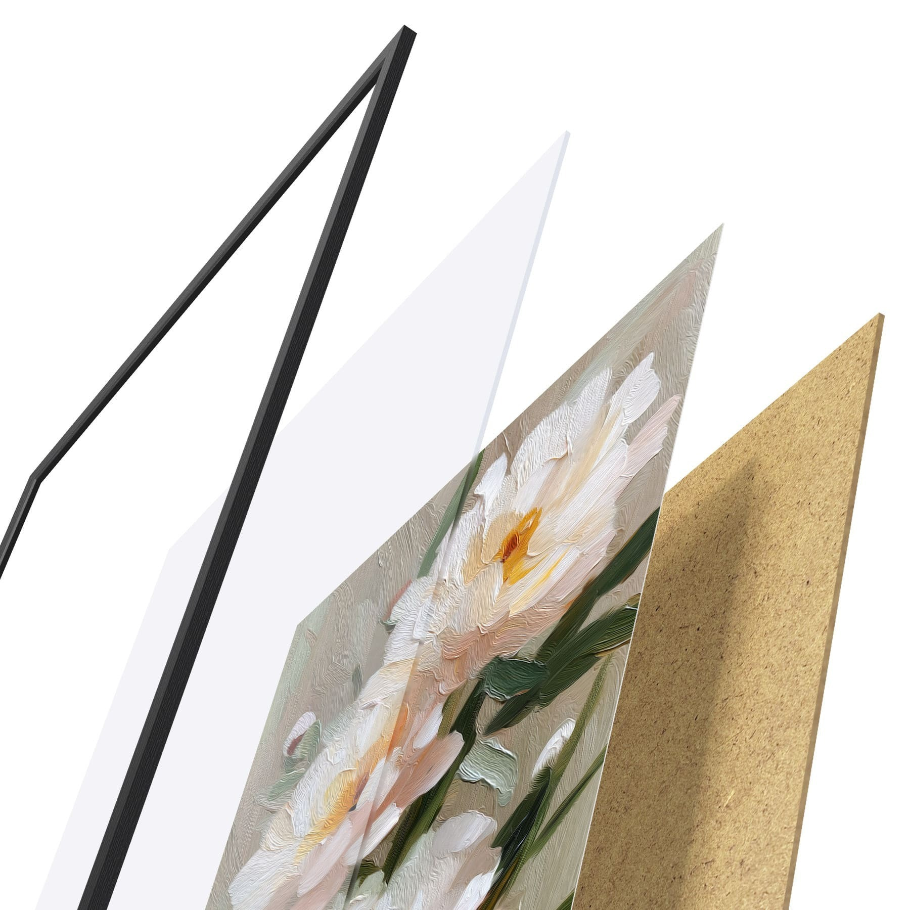Plakatą sudaro rėmas, pleksiklas, atspausdintas vaizdas ir medžio drožlių plokštės pagrindas. Plakatą galima iš karto pakabinti ant sienos dėl kitoje pusėje esančių laikiklių.
