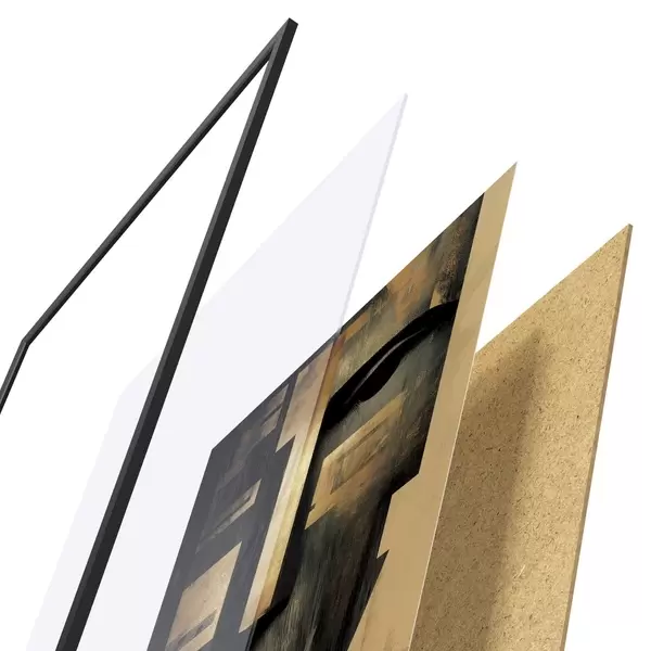 Plakatą sudaro rėmas, pleksiklas, atspausdintas vaizdas ir medžio drožlių plokštės pagrindas. Plakatą galima iš karto pakabinti ant sienos dėl kitoje pusėje esančių laikiklių.