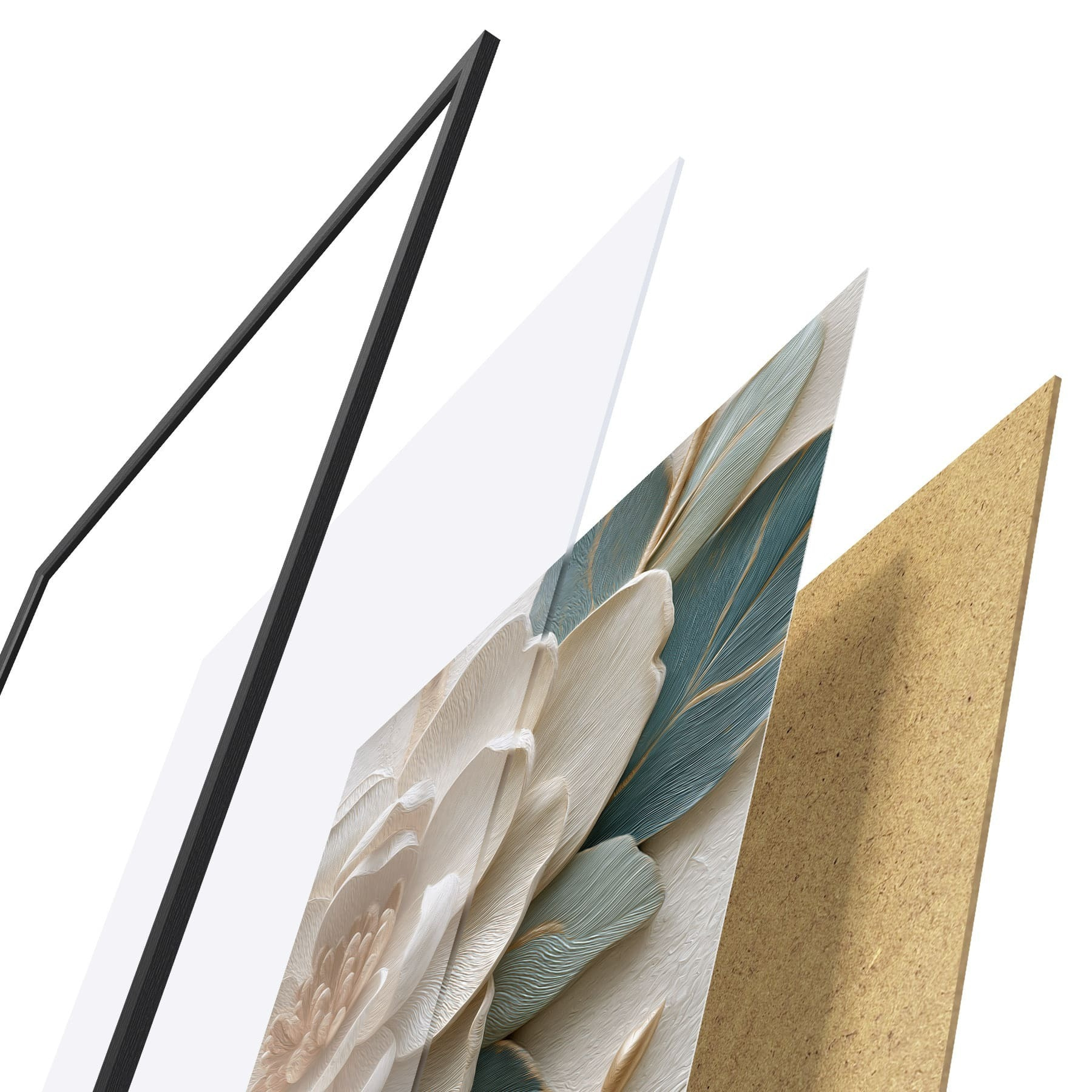 Plakatą sudaro rėmas, pleksiklas, atspausdintas vaizdas ir medžio drožlių plokštės pagrindas. Plakatą galima iš karto pakabinti ant sienos dėl kitoje pusėje esančių laikiklių.