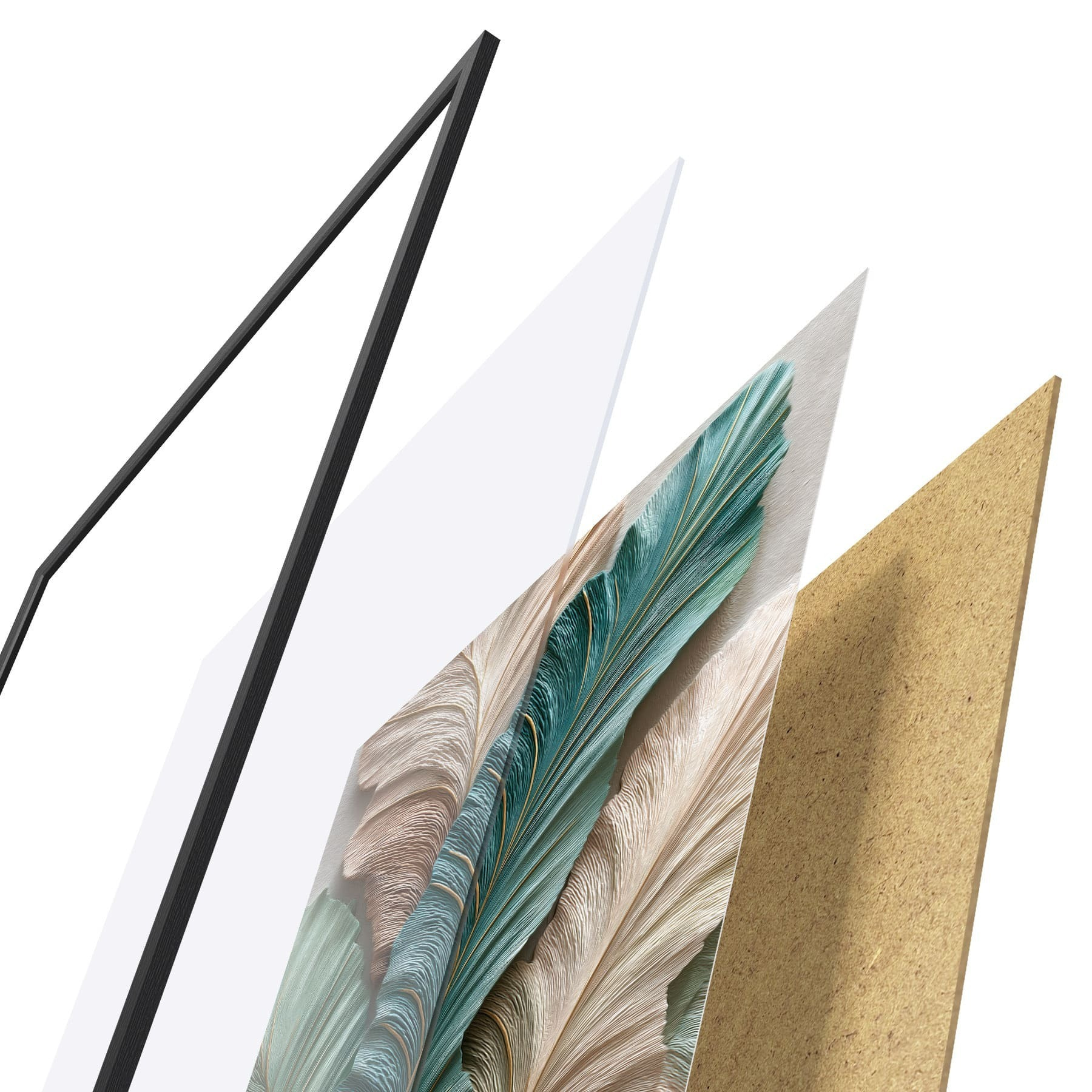 Plakatą sudaro rėmas, pleksiklas, atspausdintas vaizdas ir medžio drožlių plokštės pagrindas. Plakatą galima iš karto pakabinti ant sienos dėl kitoje pusėje esančių laikiklių.