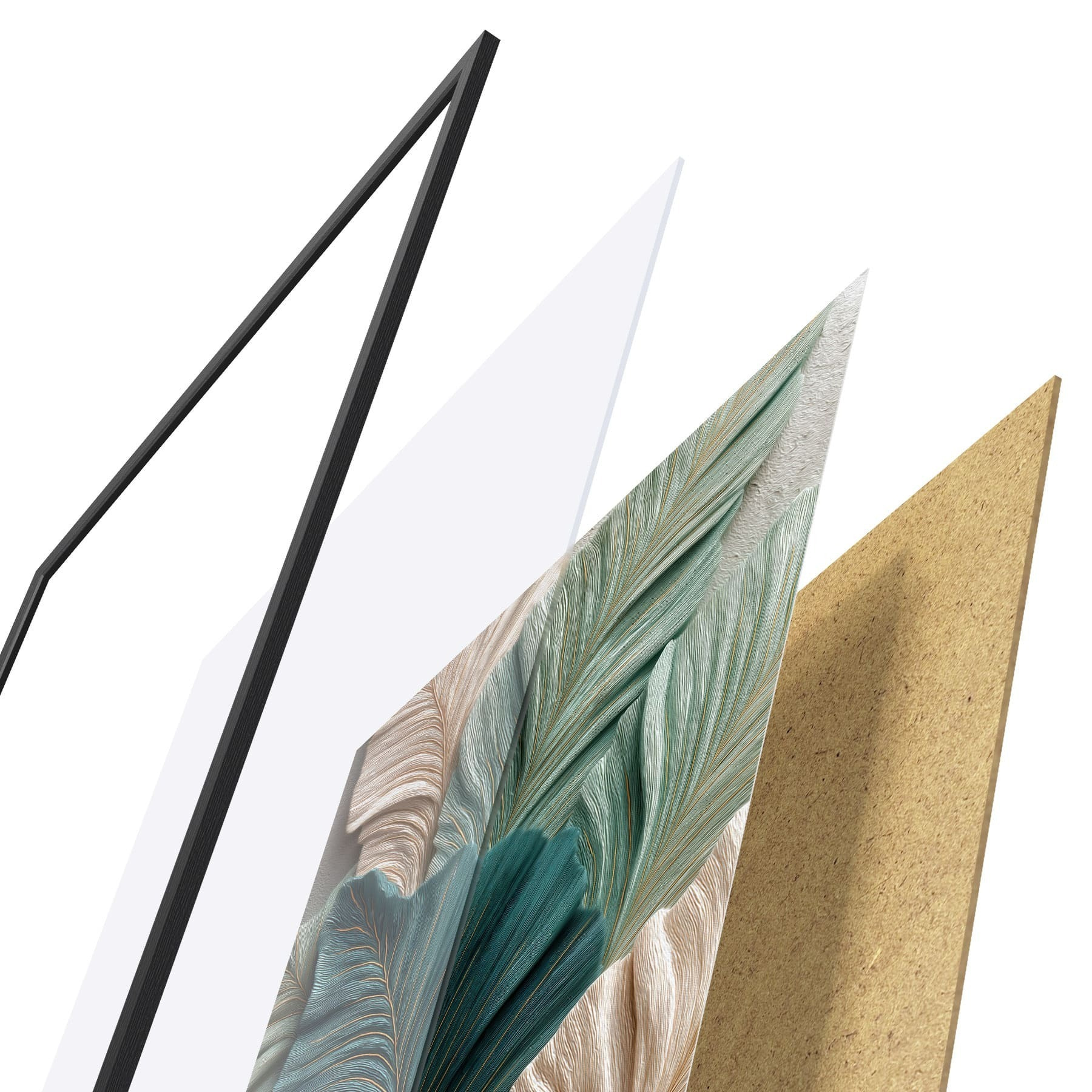 Plakatą sudaro rėmas, pleksiklas, atspausdintas vaizdas ir medžio drožlių plokštės pagrindas. Plakatą galima iš karto pakabinti ant sienos dėl kitoje pusėje esančių laikiklių.