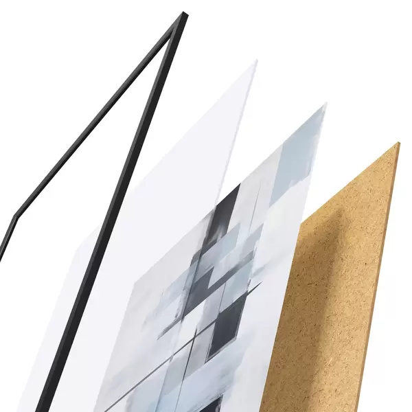 Plakatą sudaro rėmas, pleksiklas, atspausdintas vaizdas ir medžio drožlių plokštės pagrindas. Plakatą galima iš karto pakabinti ant sienos dėl kitoje pusėje esančių laikiklių.
