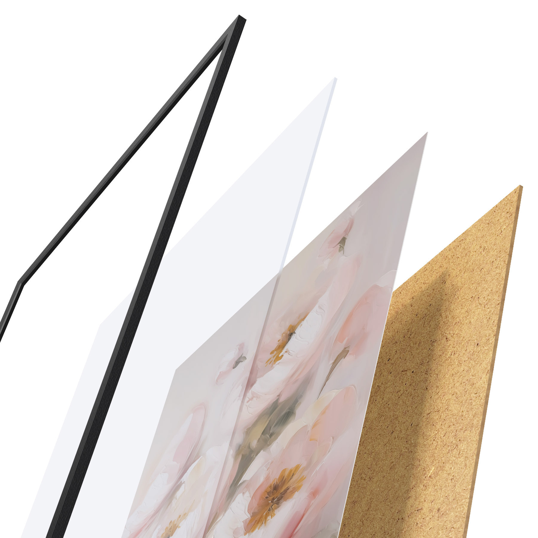 Plakatą sudaro rėmas, pleksiklas, atspausdintas vaizdas ir medžio drožlių plokštės pagrindas. Plakatą galima iš karto pakabinti ant sienos dėl kitoje pusėje esančių laikiklių.