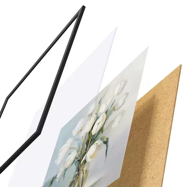 Plakatą sudaro rėmas, pleksiklas, atspausdintas vaizdas ir medžio drožlių plokštės pagrindas. Plakatą galima iš karto pakabinti ant sienos dėl kitoje pusėje esančių laikiklių.