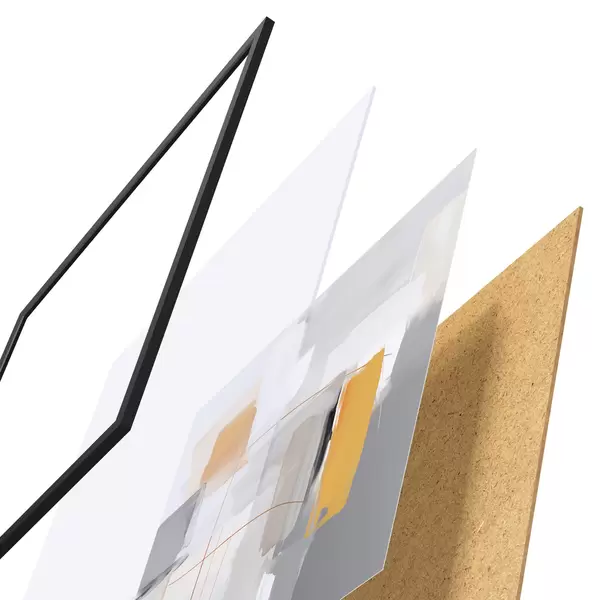 Plakatą sudaro rėmas, pleksiklas, atspausdintas vaizdas ir medžio drožlių plokštės pagrindas. Plakatą galima iš karto pakabinti ant sienos dėl kitoje pusėje esančių laikiklių.