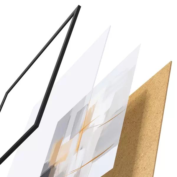 Plakatą sudaro rėmas, pleksiklas, atspausdintas vaizdas ir medžio drožlių plokštės pagrindas. Plakatą galima iš karto pakabinti ant sienos dėl kitoje pusėje esančių laikiklių.