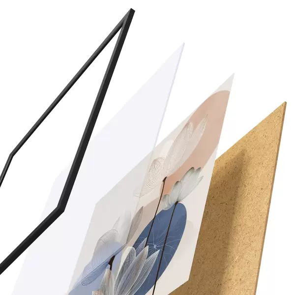 Plakatą sudaro rėmas, pleksiklas, atspausdintas vaizdas ir medžio drožlių plokštės pagrindas. Plakatą galima iš karto pakabinti ant sienos dėl kitoje pusėje esančių laikiklių.