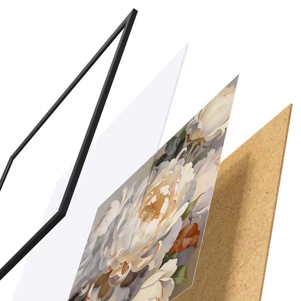 Plakatą sudaro rėmas, pleksiklas, atspausdintas vaizdas ir medžio drožlių plokštės pagrindas. Plakatą galima iš karto pakabinti ant sienos dėl kitoje pusėje esančių laikiklių.