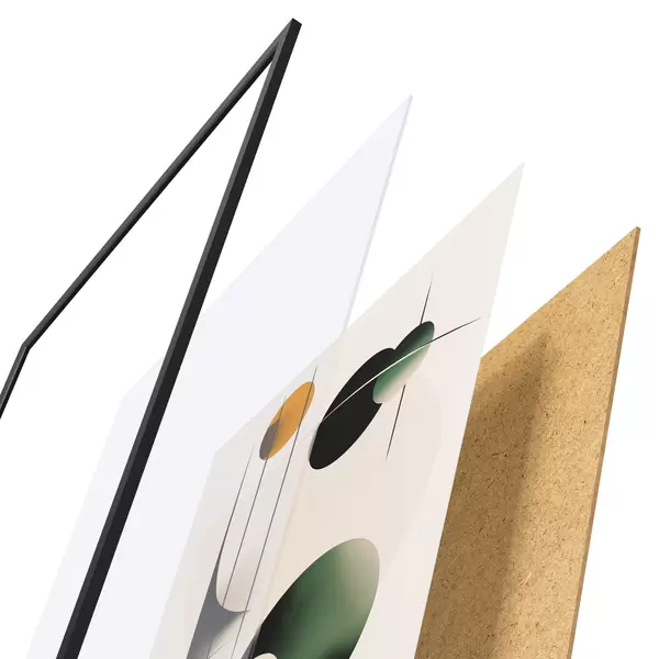 Plakatą sudaro rėmas, pleksiklas, atspausdintas vaizdas ir medžio drožlių plokštės pagrindas. Plakatą galima iš karto pakabinti ant sienos dėl kitoje pusėje esančių laikiklių.