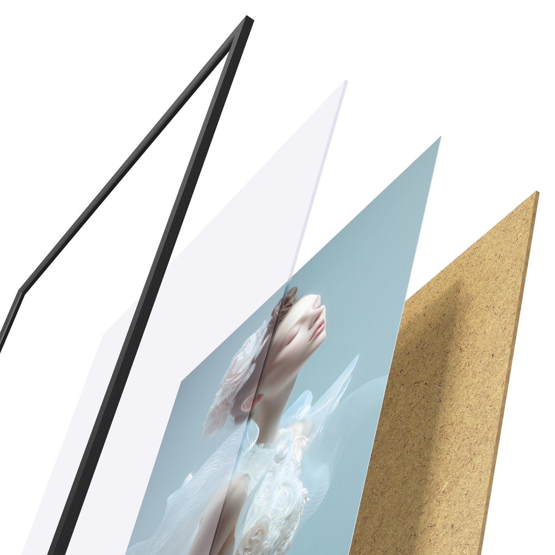 Plakatą sudaro rėmas, pleksiklas, atspausdintas vaizdas ir medžio drožlių plokštės pagrindas. Plakatą galima iš karto pakabinti ant sienos dėl kitoje pusėje esančių laikiklių.