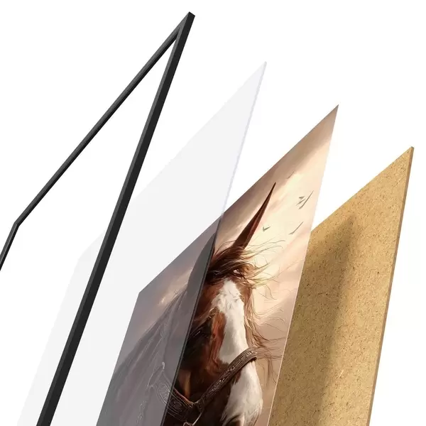 Plakatą sudaro rėmas, pleksiklas, atspausdintas vaizdas ir medžio drožlių plokštės pagrindas. Plakatą galima iš karto pakabinti ant sienos dėl kitoje pusėje esančių laikiklių.