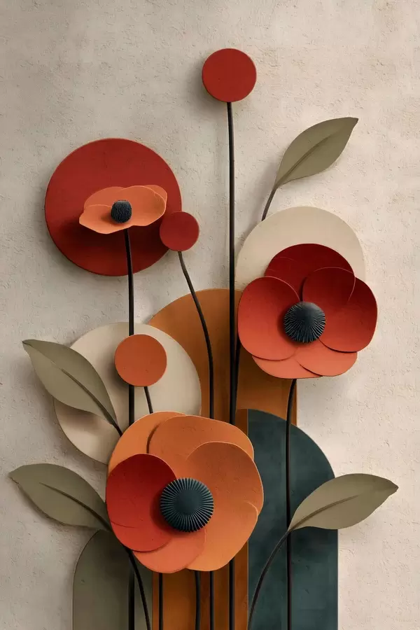 Plakatas gėlės supaprastintu stiliumi su tūrio efektu f48293
