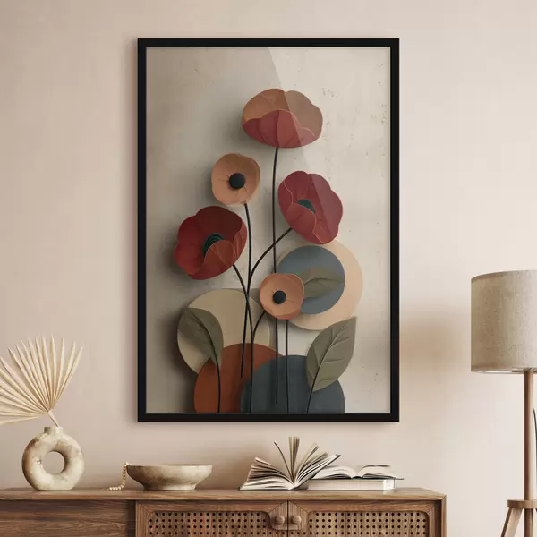 Plakatas gėlės supaprastintu stiliumi su tūrio efektu f48294