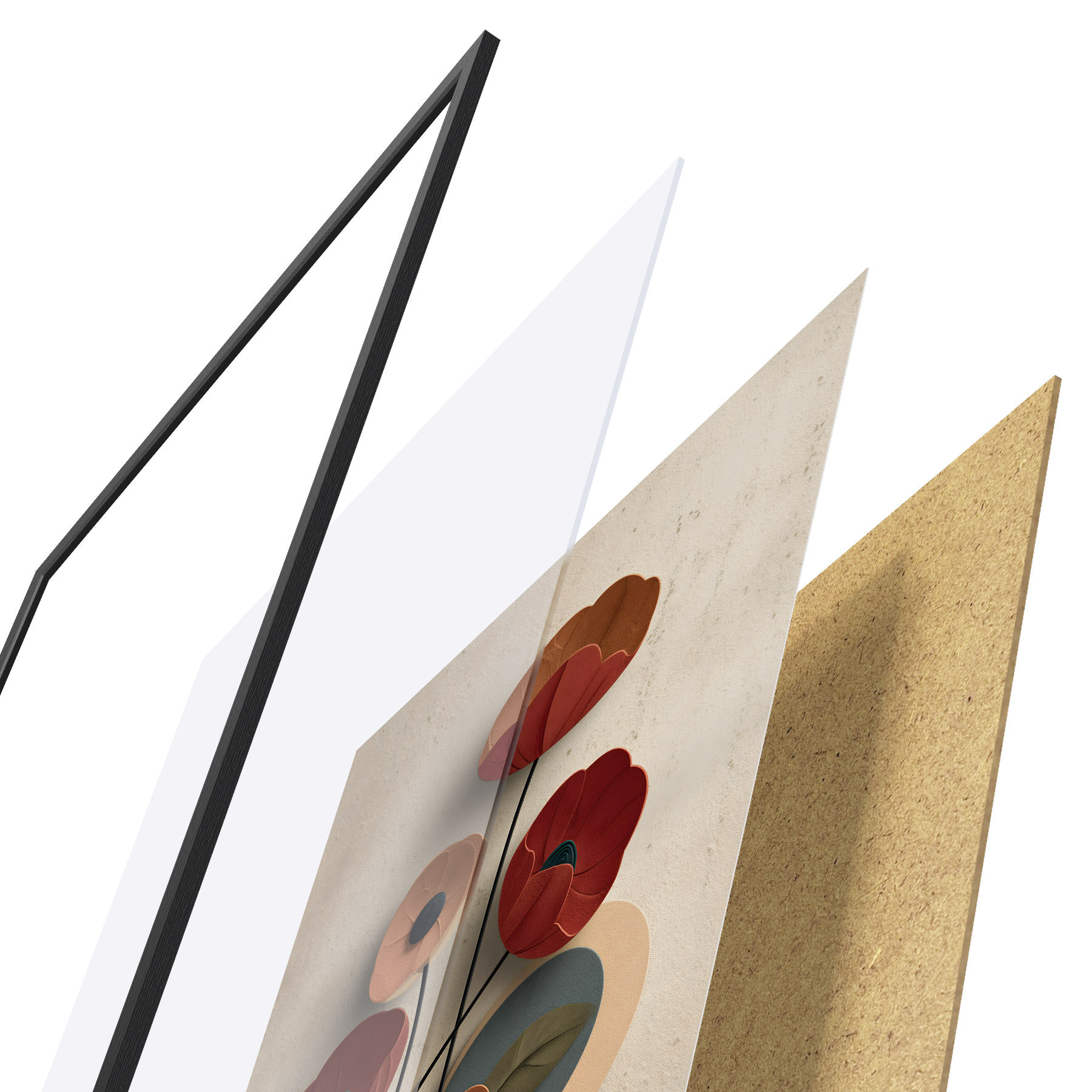 Plakatą sudaro rėmas, pleksiklas, atspausdintas vaizdas ir medžio drožlių plokštės pagrindas. Plakatą galima iš karto pakabinti ant sienos dėl kitoje pusėje esančių laikiklių.
