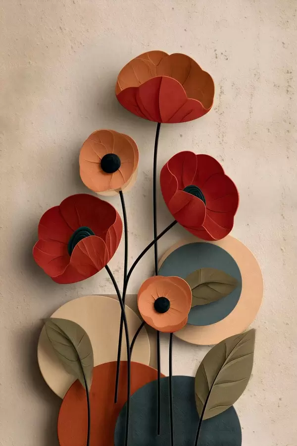 Plakatas gėlės supaprastintu stiliumi su tūrio efektu f48294