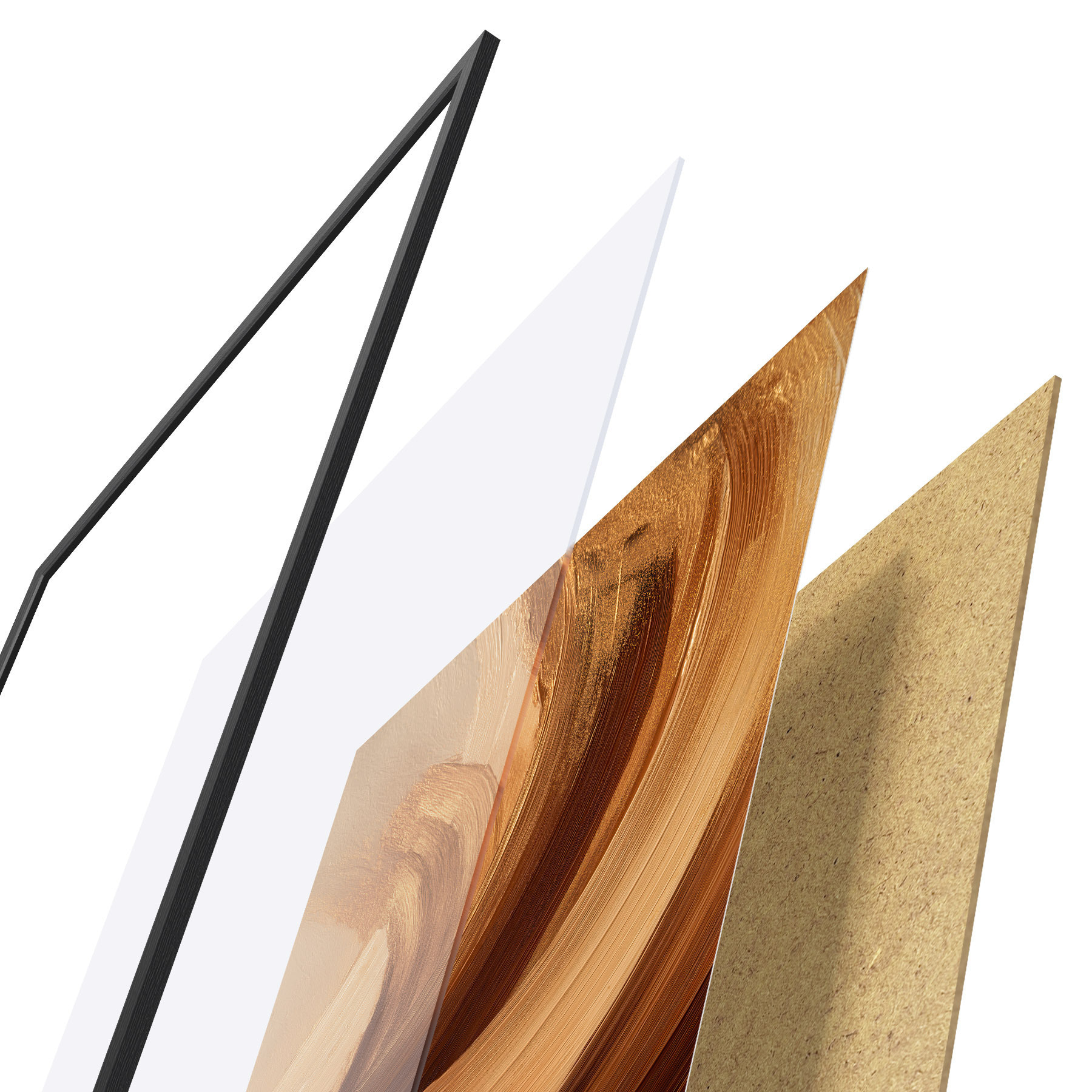 Plakatą sudaro rėmas, pleksiklas, atspausdintas vaizdas ir medžio drožlių plokštės pagrindas. Plakatą galima iš karto pakabinti ant sienos dėl kitoje pusėje esančių laikiklių.