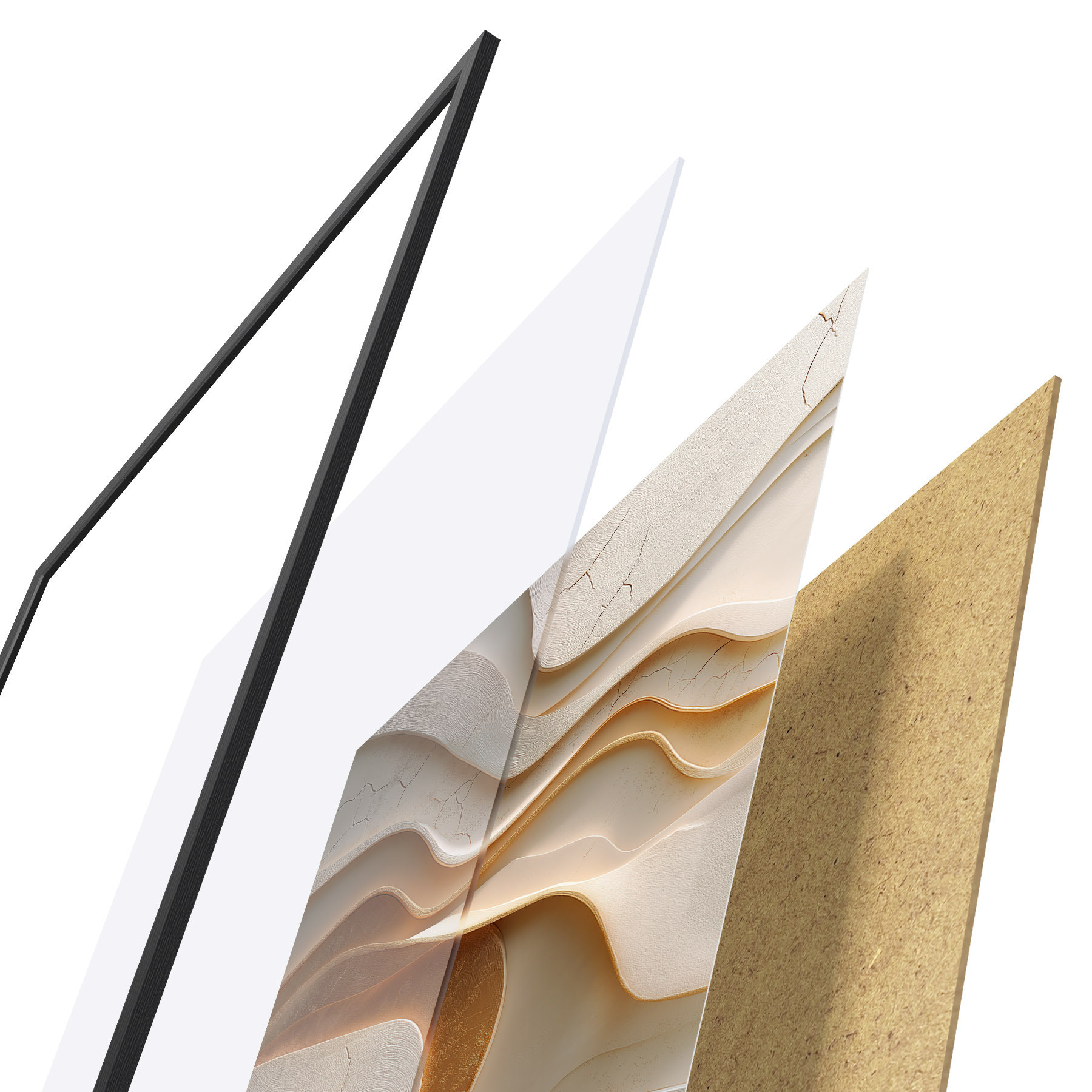Plakatą sudaro rėmas, pleksiklas, atspausdintas vaizdas ir medžio drožlių plokštės pagrindas. Plakatą galima iš karto pakabinti ant sienos dėl kitoje pusėje esančių laikiklių.