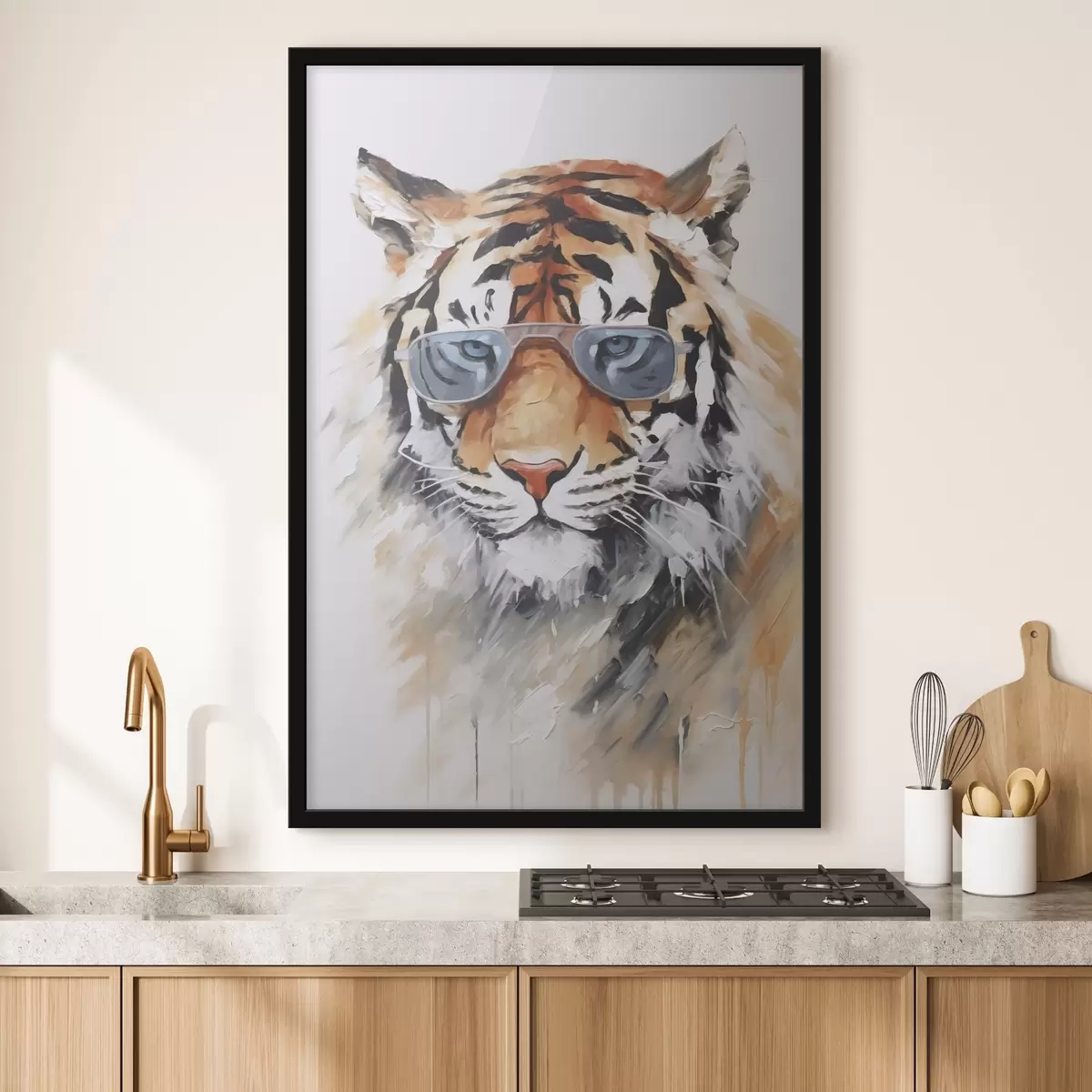 Plakatas Tigras su akiniais, imituojantis tapybą f48319
