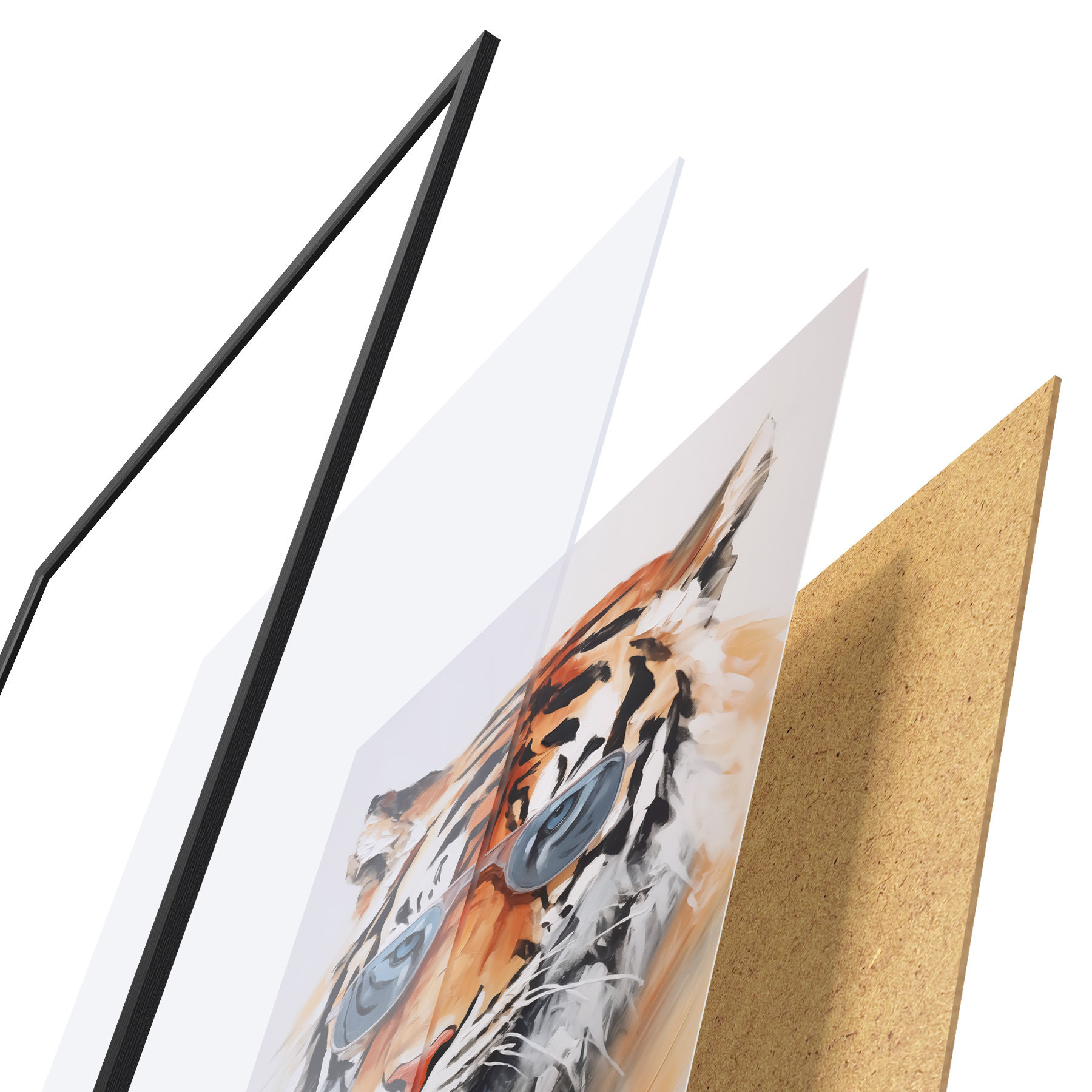 Plakatą sudaro rėmas, pleksiklas, atspausdintas vaizdas ir medžio drožlių plokštės pagrindas. Plakatą galima iš karto pakabinti ant sienos dėl kitoje pusėje esančių laikiklių.