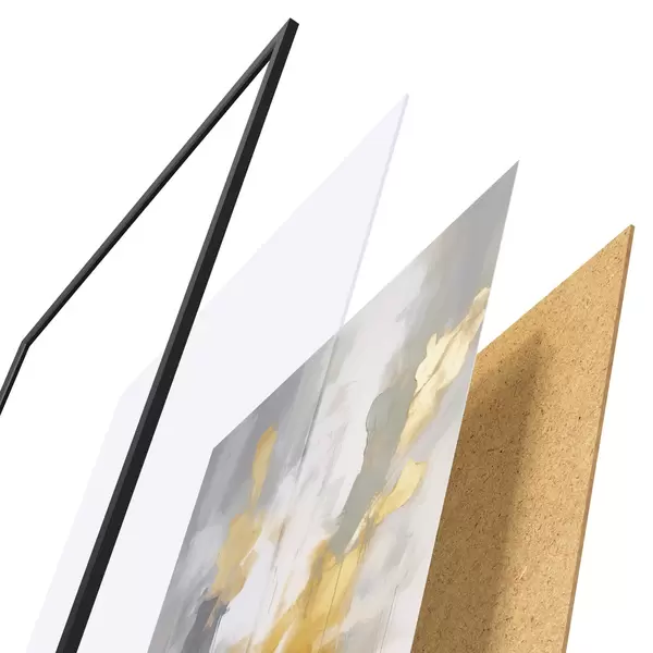 Plakatą sudaro rėmas, pleksiklas, atspausdintas vaizdas ir medžio drožlių plokštės pagrindas. Plakatą galima iš karto pakabinti ant sienos dėl kitoje pusėje esančių laikiklių.