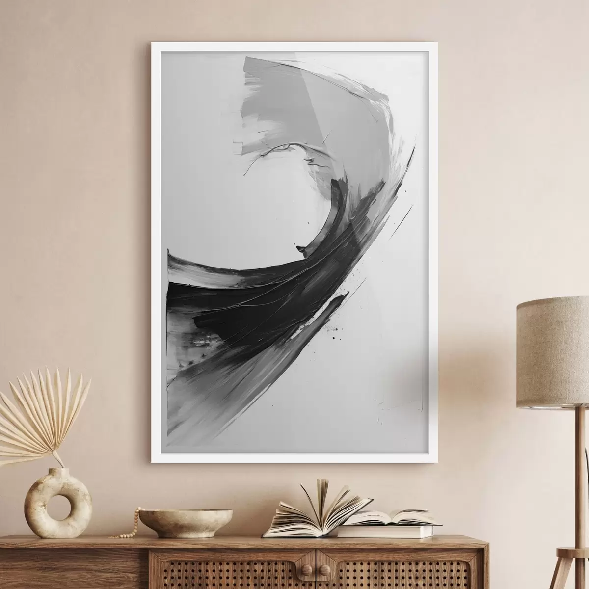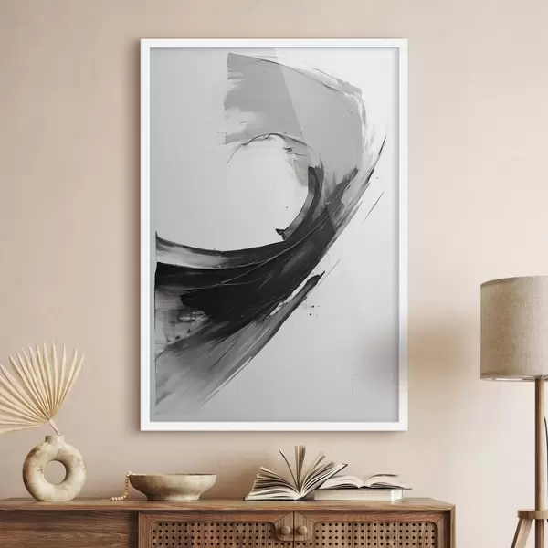 Plakatas Abstrakti juoda teptuko potėpio kompozicija ant balto fono f48326