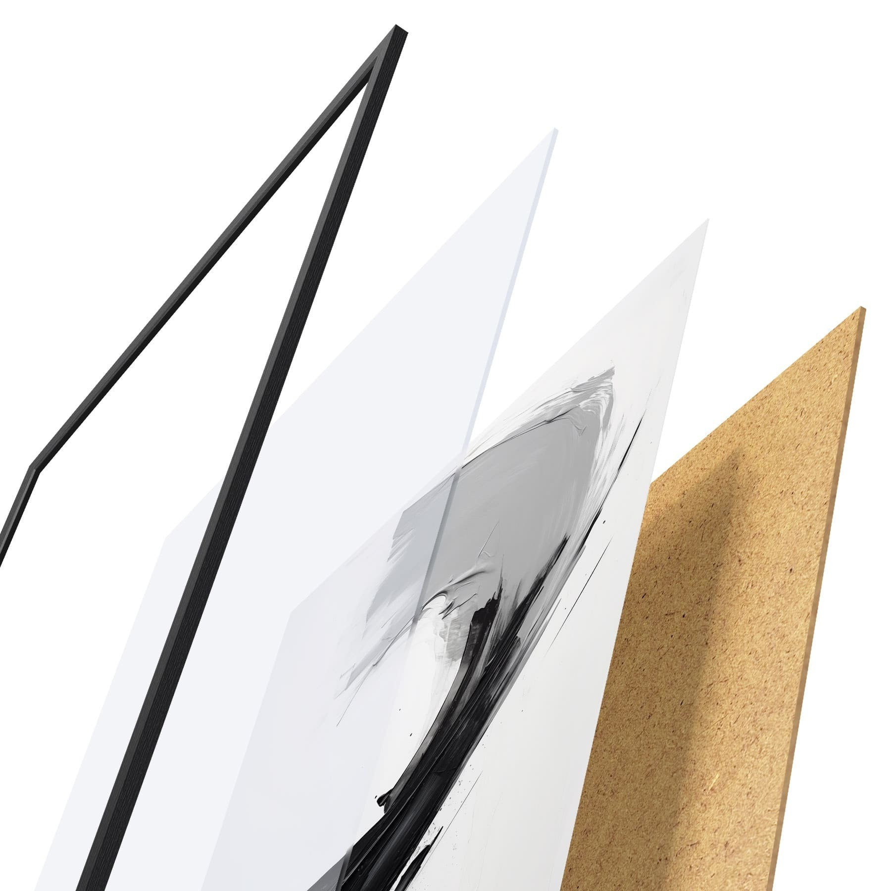 Plakatą sudaro rėmas, pleksiklas, atspausdintas vaizdas ir medžio drožlių plokštės pagrindas. Plakatą galima iš karto pakabinti ant sienos dėl kitoje pusėje esančių laikiklių.