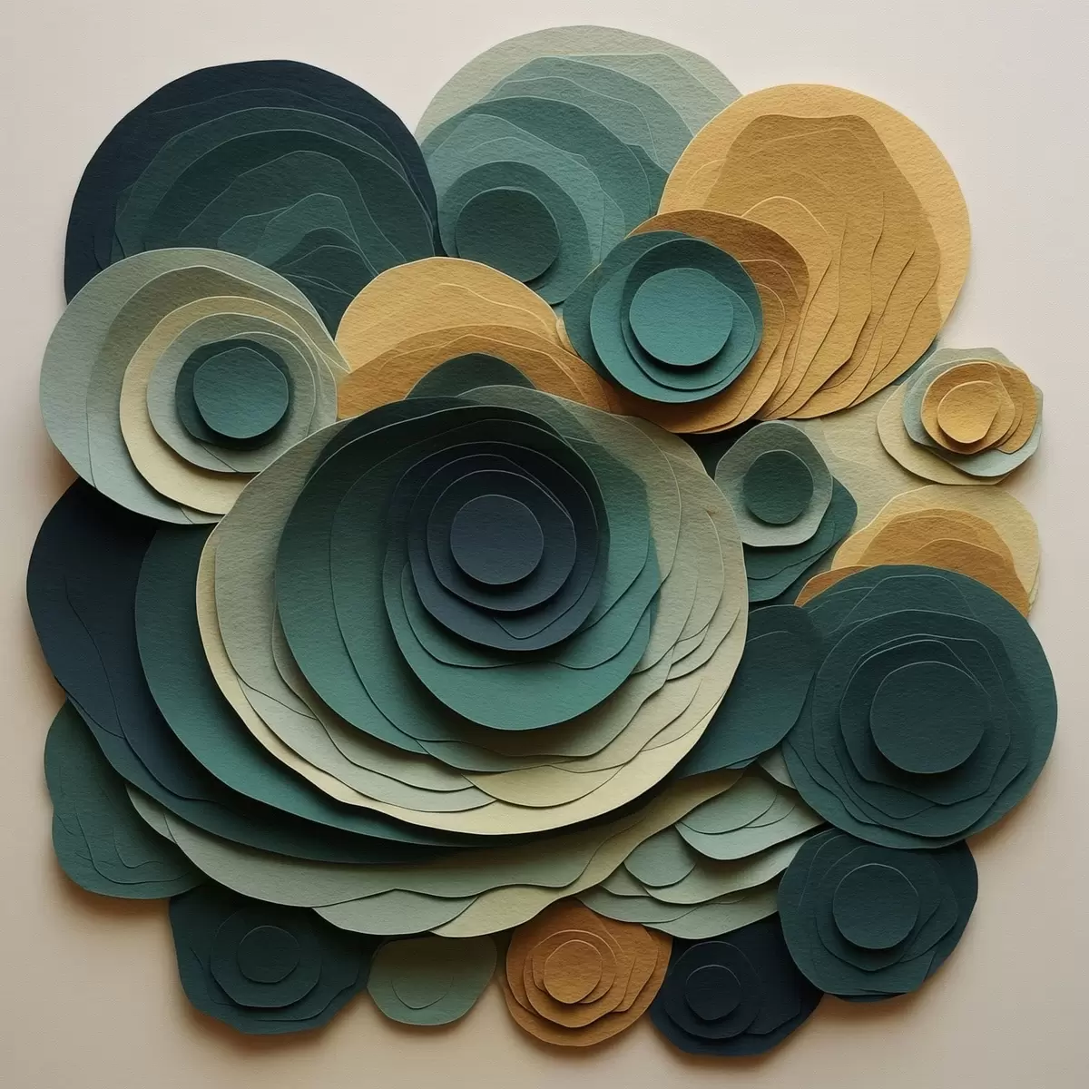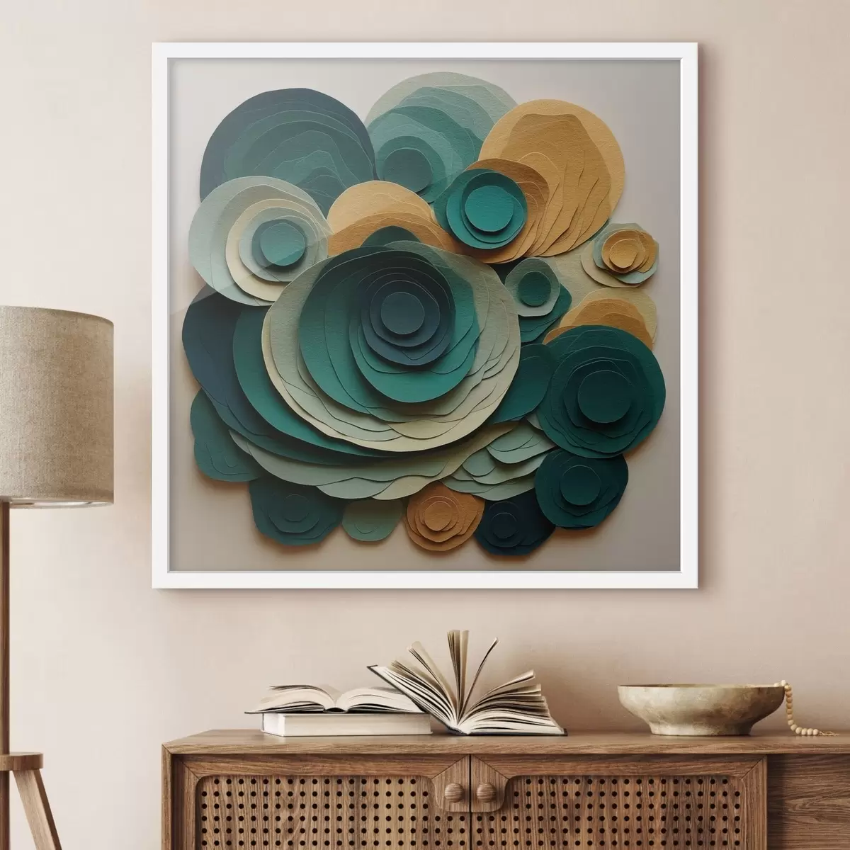 Plakatas Sluoksniuoti popieriniai apskritimai žalios ir smėlio spalvų tonais f48332