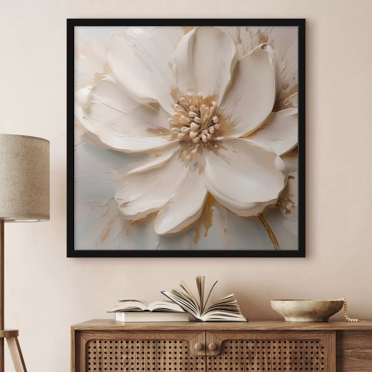 Plakatas Tekstūruotas baltas gėlės motyvas švelnių atspalvių f48339