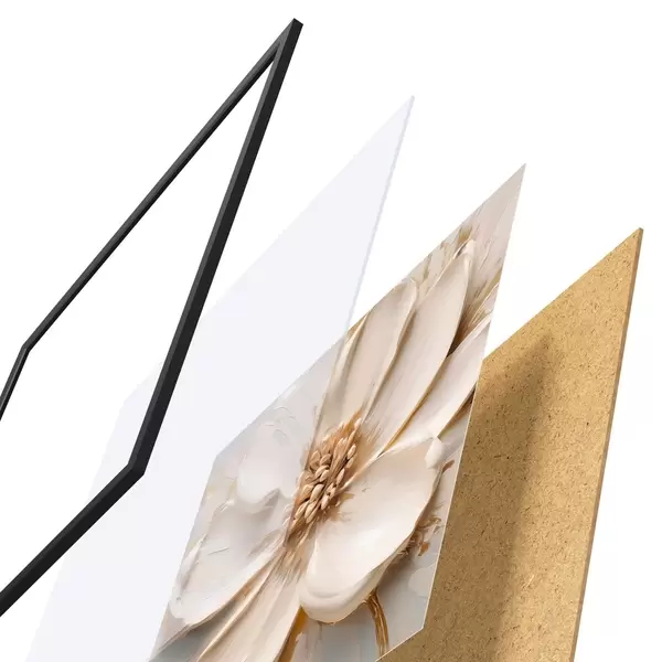 Plakatą sudaro rėmas, pleksiklas, atspausdintas vaizdas ir medžio drožlių plokštės pagrindas. Plakatą galima iš karto pakabinti ant sienos dėl kitoje pusėje esančių laikiklių.