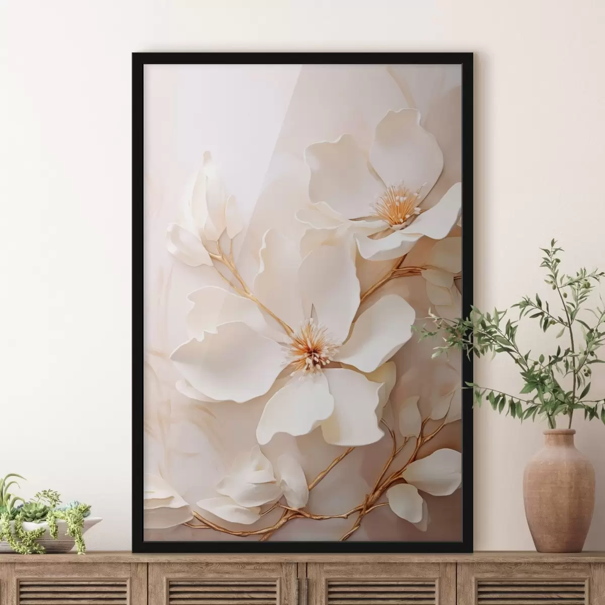 Plakatas Šviesios gėlės su plonais stiebais ant pastelinio fono Ne f48348