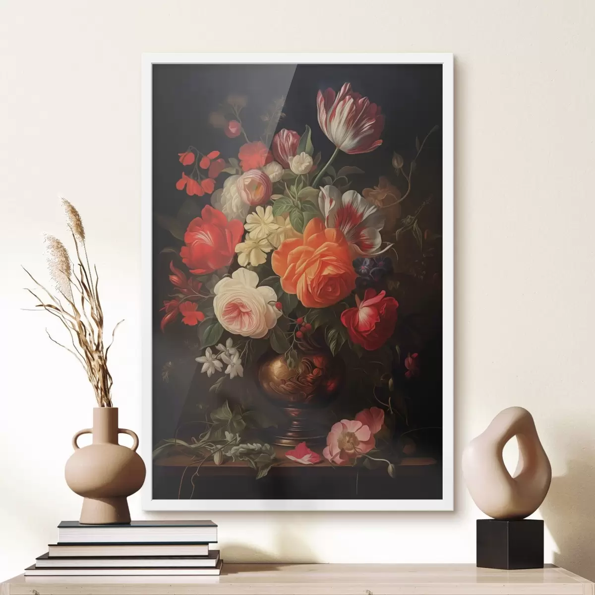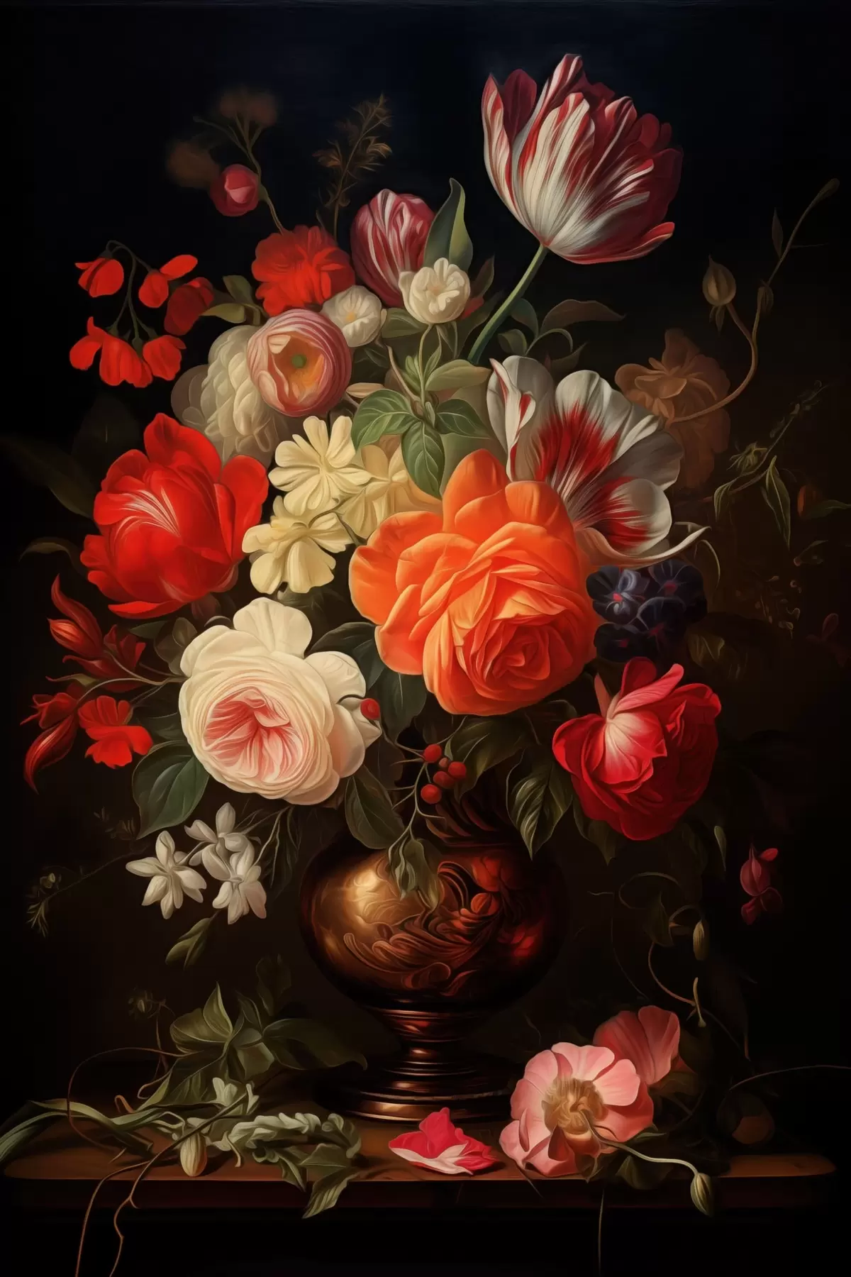 Plakatas Gėlių puokštė vazoje ant tamsaus fono Ne f48351