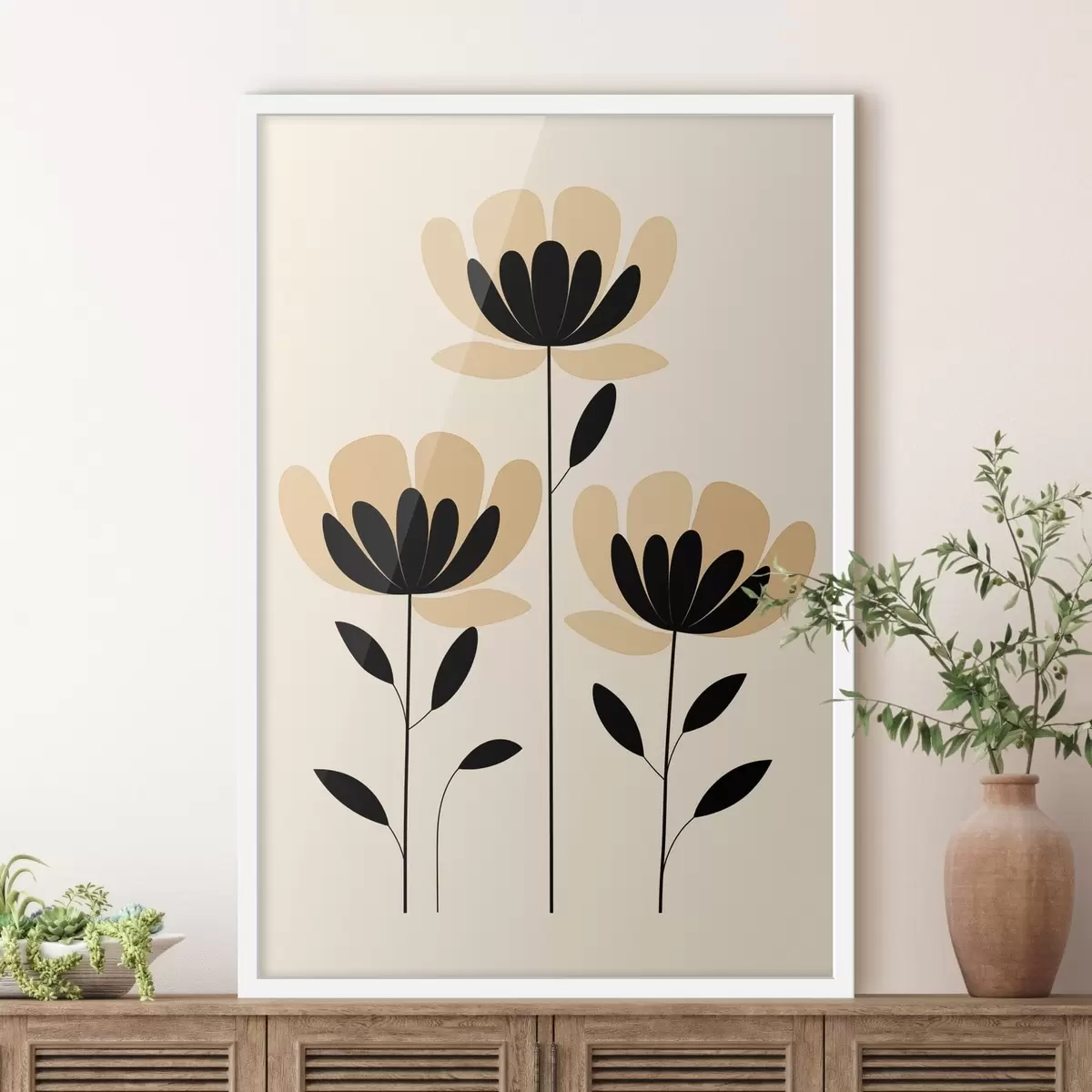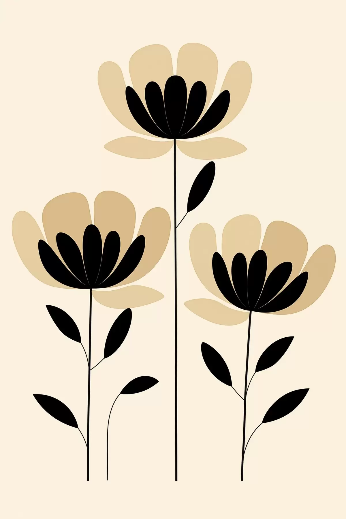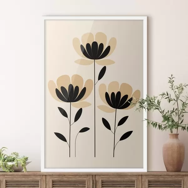 Plakatas Minimalistinės gėlės juodos ir smėlio spalvų stiliaus f48353