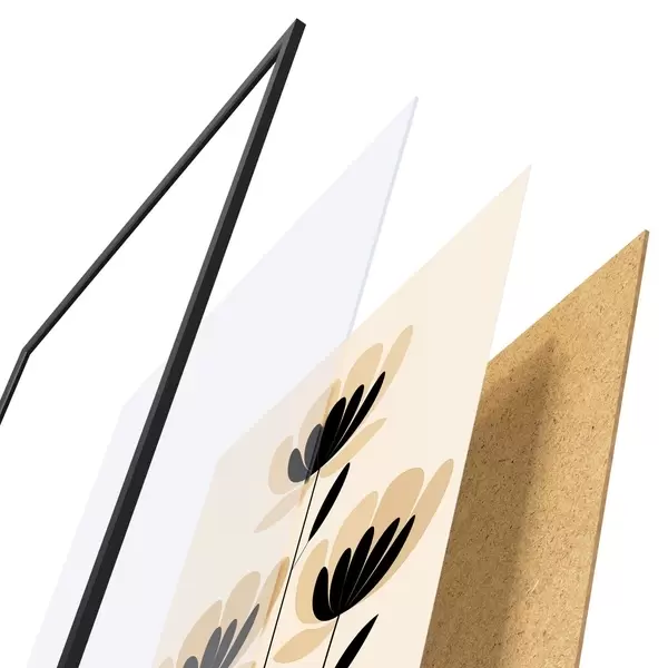 Plakatą sudaro rėmas, pleksiklas, atspausdintas vaizdas ir medžio drožlių plokštės pagrindas. Plakatą galima iš karto pakabinti ant sienos dėl kitoje pusėje esančių laikiklių.