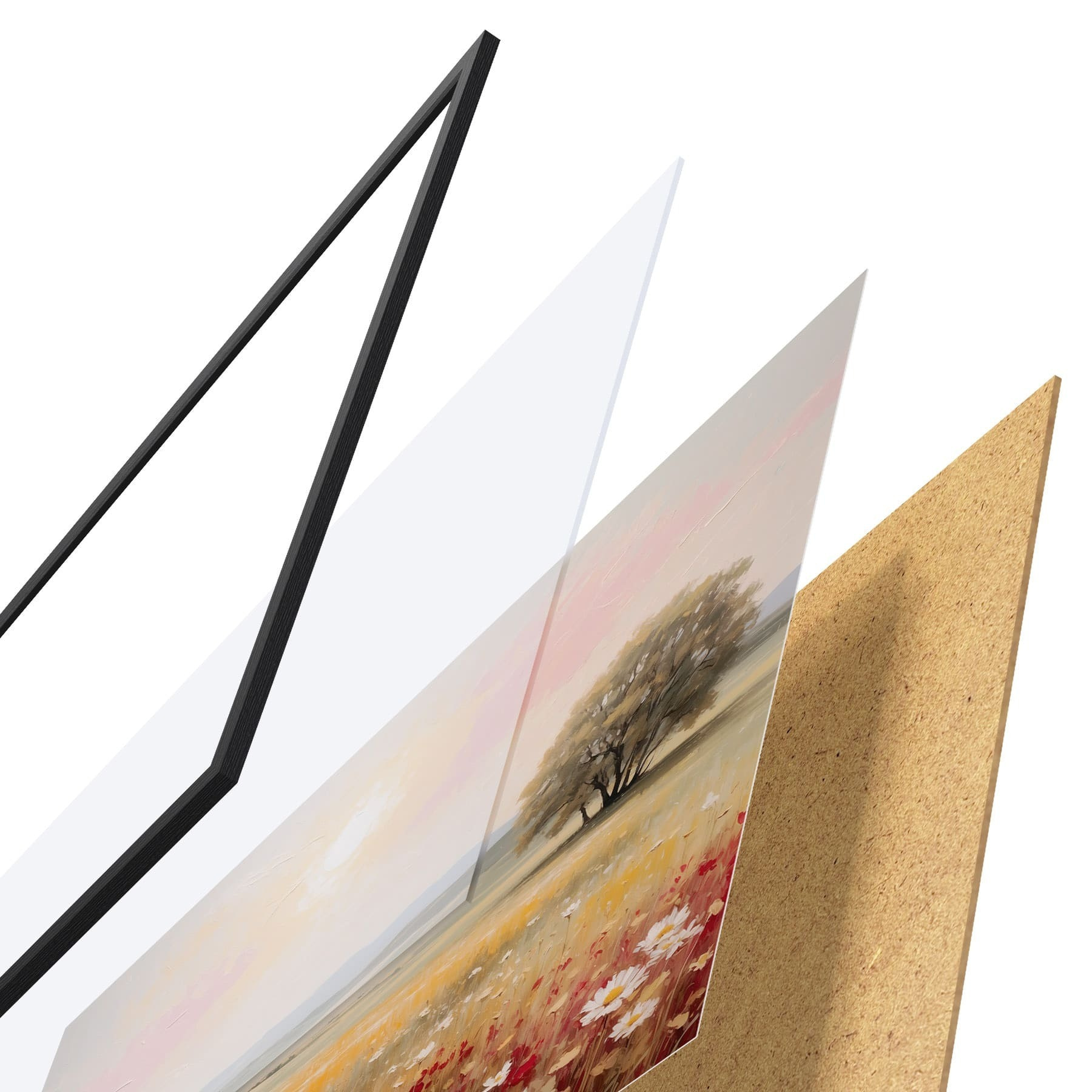Plakatą sudaro rėmas, pleksiklas, atspausdintas vaizdas ir medžio drožlių plokštės pagrindas. Plakatą galima iš karto pakabinti ant sienos dėl kitoje pusėje esančių laikiklių.