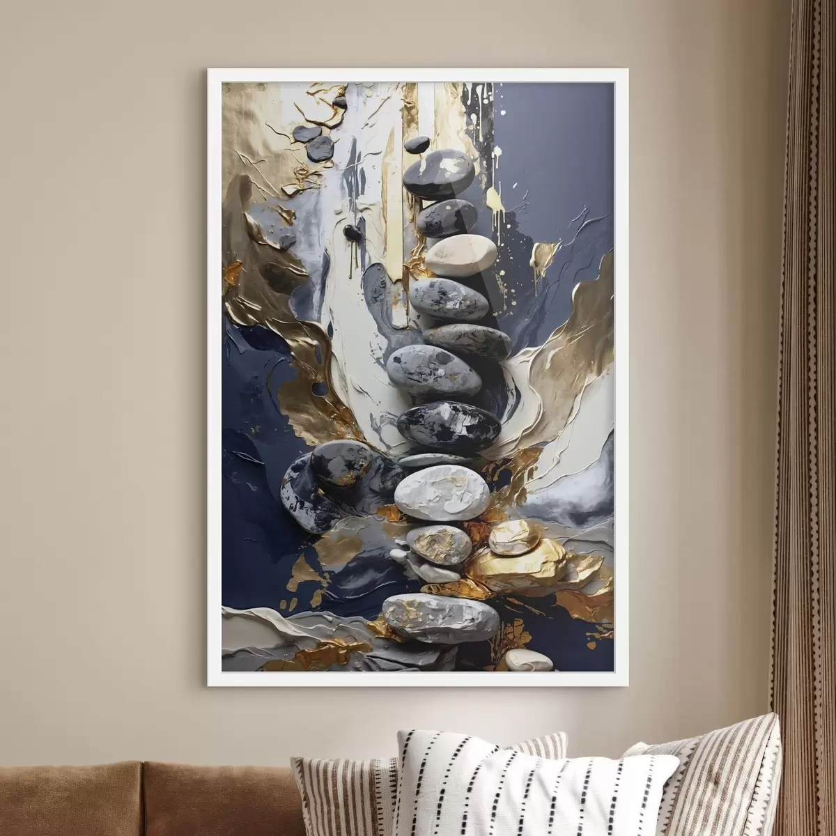 Plakatas Abstrakti kompozicija su akmenimis ir tekstūringais potėpiais Ne f48362