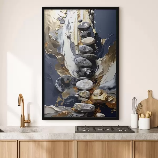 Plakatas Abstrakti kompozicija su akmenimis ir tekstūringais potėpiais f48362