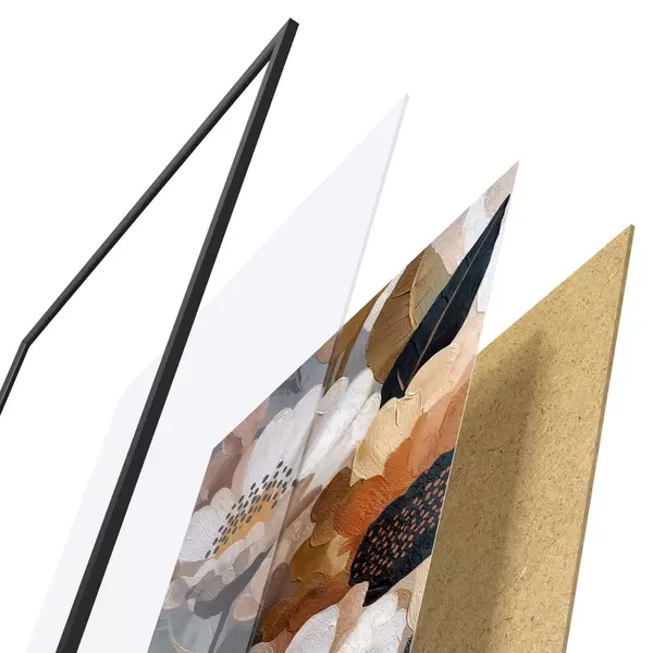 Plakatą sudaro rėmas, pleksiklas, atspausdintas vaizdas ir medžio drožlių plokštės pagrindas. Plakatą galima iš karto pakabinti ant sienos dėl kitoje pusėje esančių laikiklių.
