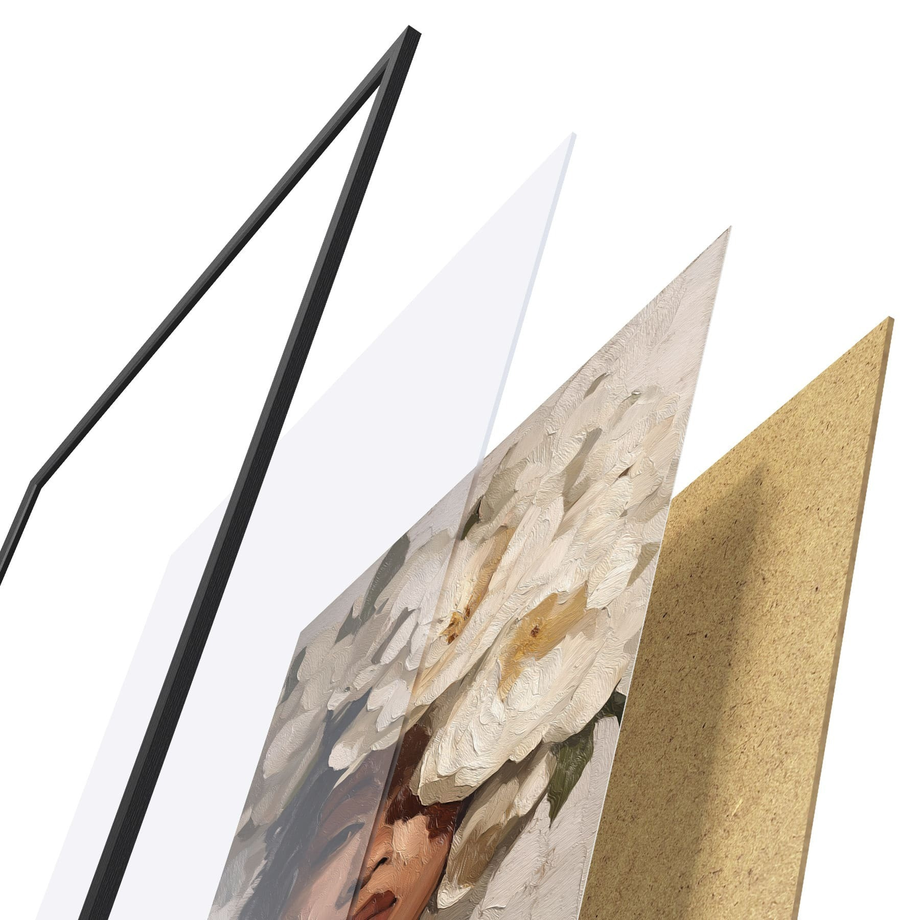 Plakatą sudaro rėmas, pleksiklas, atspausdintas vaizdas ir medžio drožlių plokštės pagrindas. Plakatą galima iš karto pakabinti ant sienos dėl kitoje pusėje esančių laikiklių.