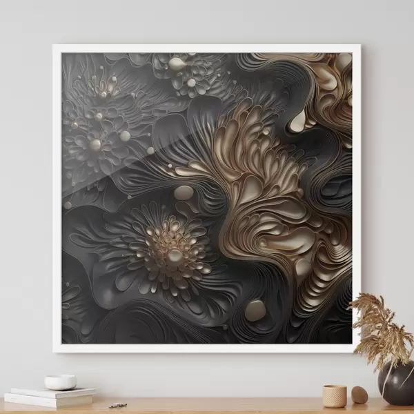 Plakatas Abstrakčios, tekančios, organiškos tamsios formos, sudarančios tekstūringą šiuolaikinio meno kūrinį f48384