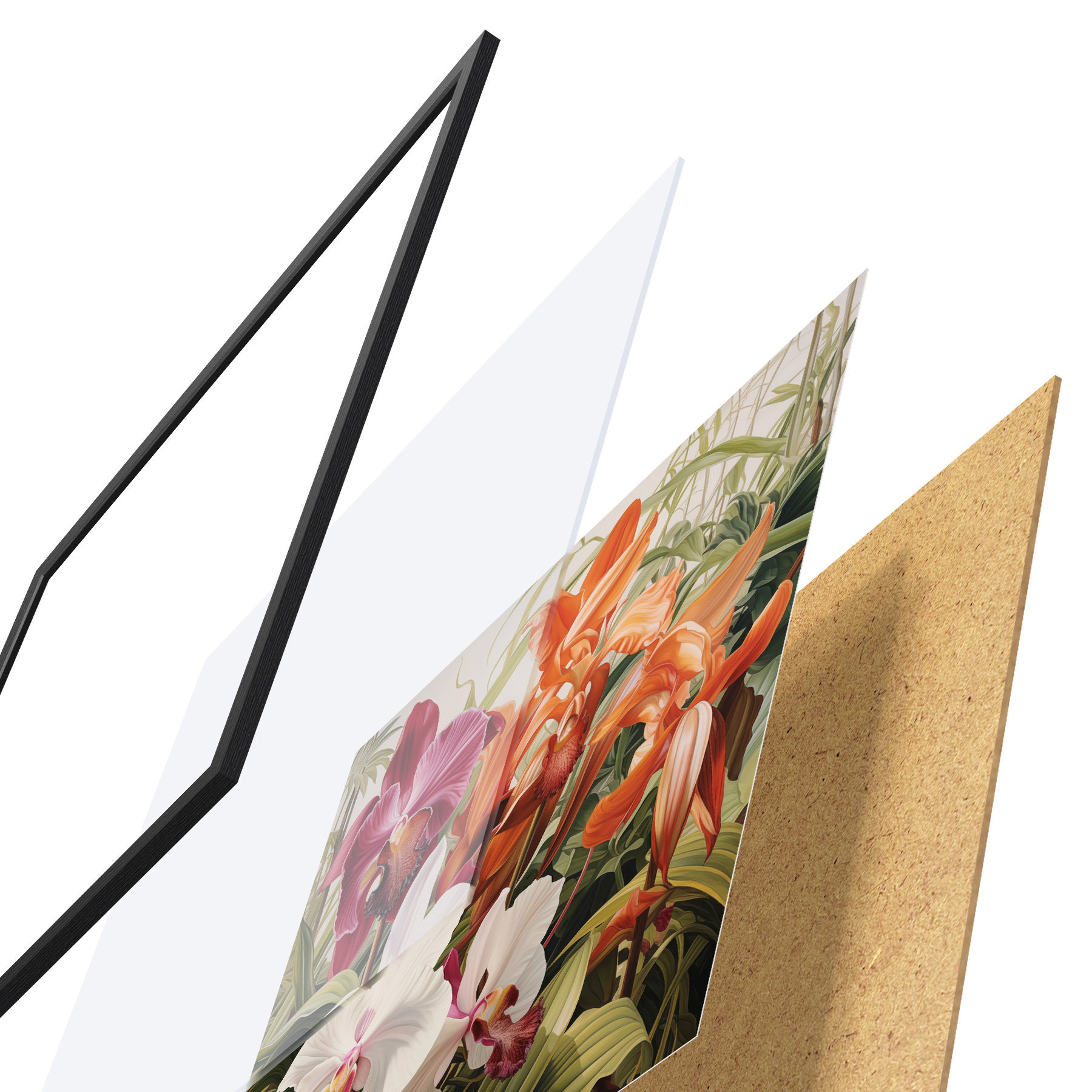 Plakatą sudaro rėmas, pleksiklas, atspausdintas vaizdas ir medžio drožlių plokštės pagrindas. Plakatą galima iš karto pakabinti ant sienos dėl kitoje pusėje esančių laikiklių.