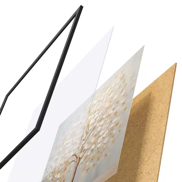 Plakatą sudaro rėmas, pleksiklas, atspausdintas vaizdas ir medžio drožlių plokštės pagrindas. Plakatą galima iš karto pakabinti ant sienos dėl kitoje pusėje esančių laikiklių.