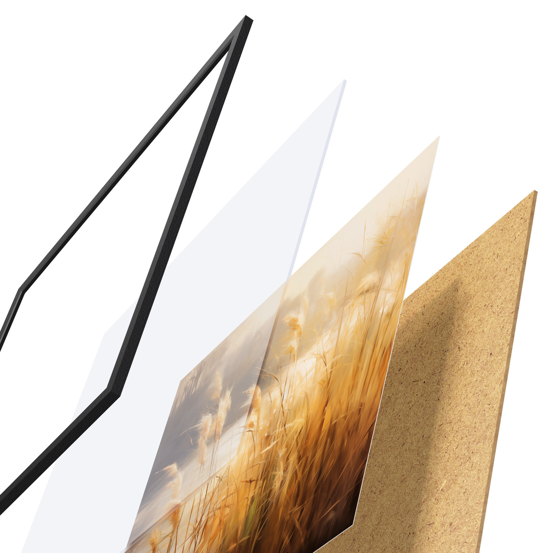 Plakatą sudaro rėmas, pleksiklas, atspausdintas vaizdas ir medžio drožlių plokštės pagrindas. Plakatą galima iš karto pakabinti ant sienos dėl kitoje pusėje esančių laikiklių.