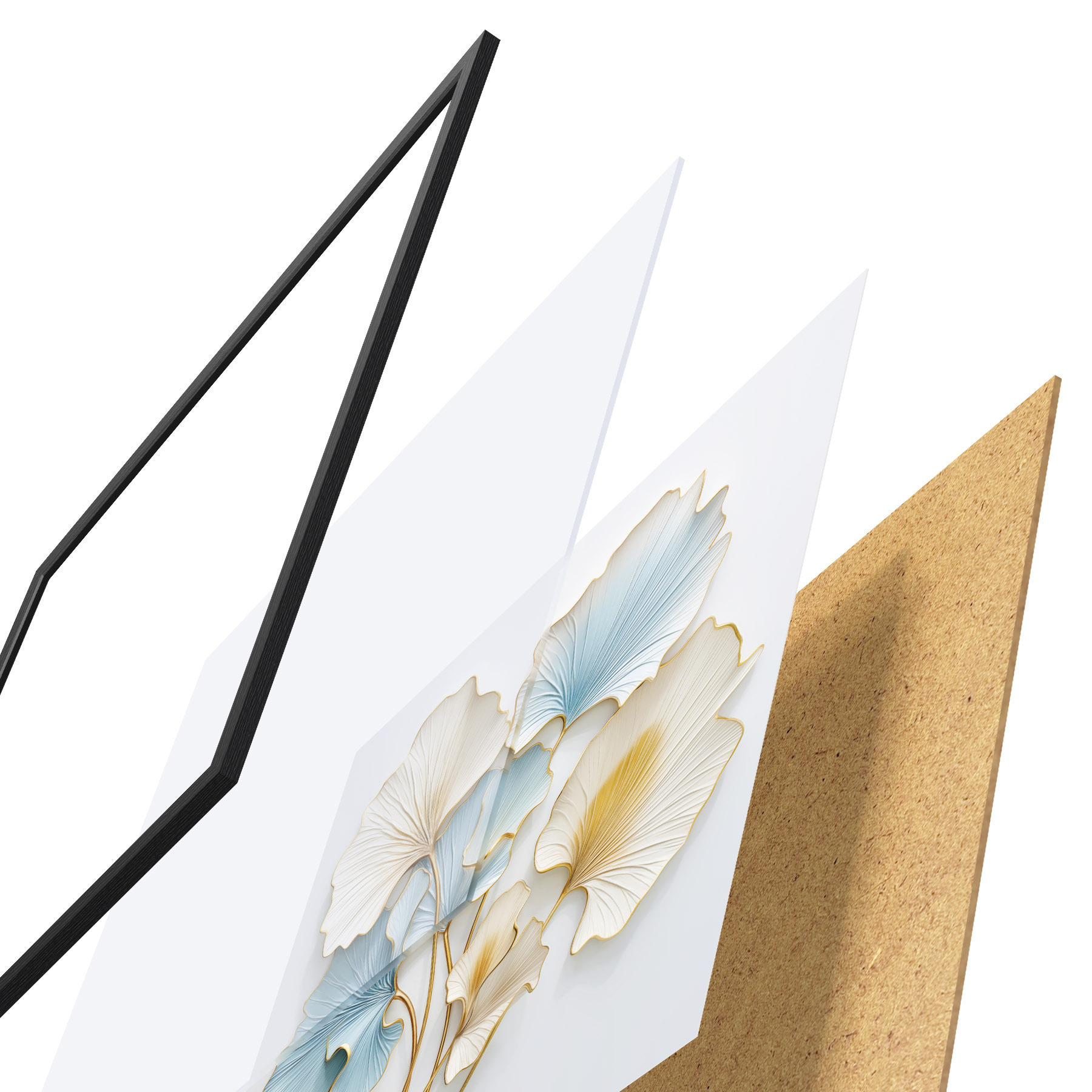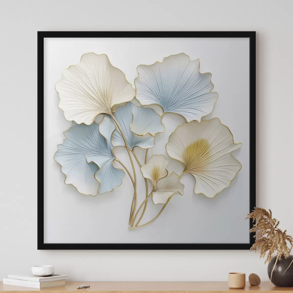 Plakatas Stilizuoti ginkgo lapai su mėlynomis ir geltonomis detalėmis f48398